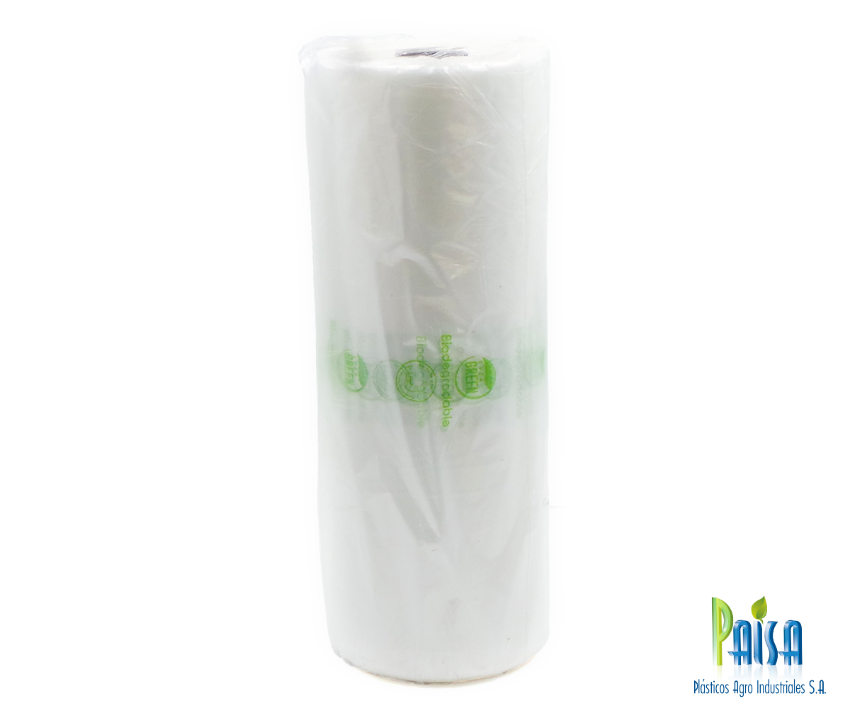 Bolsa en rollo polipapel con centro 100% reciclable y biodegradable.